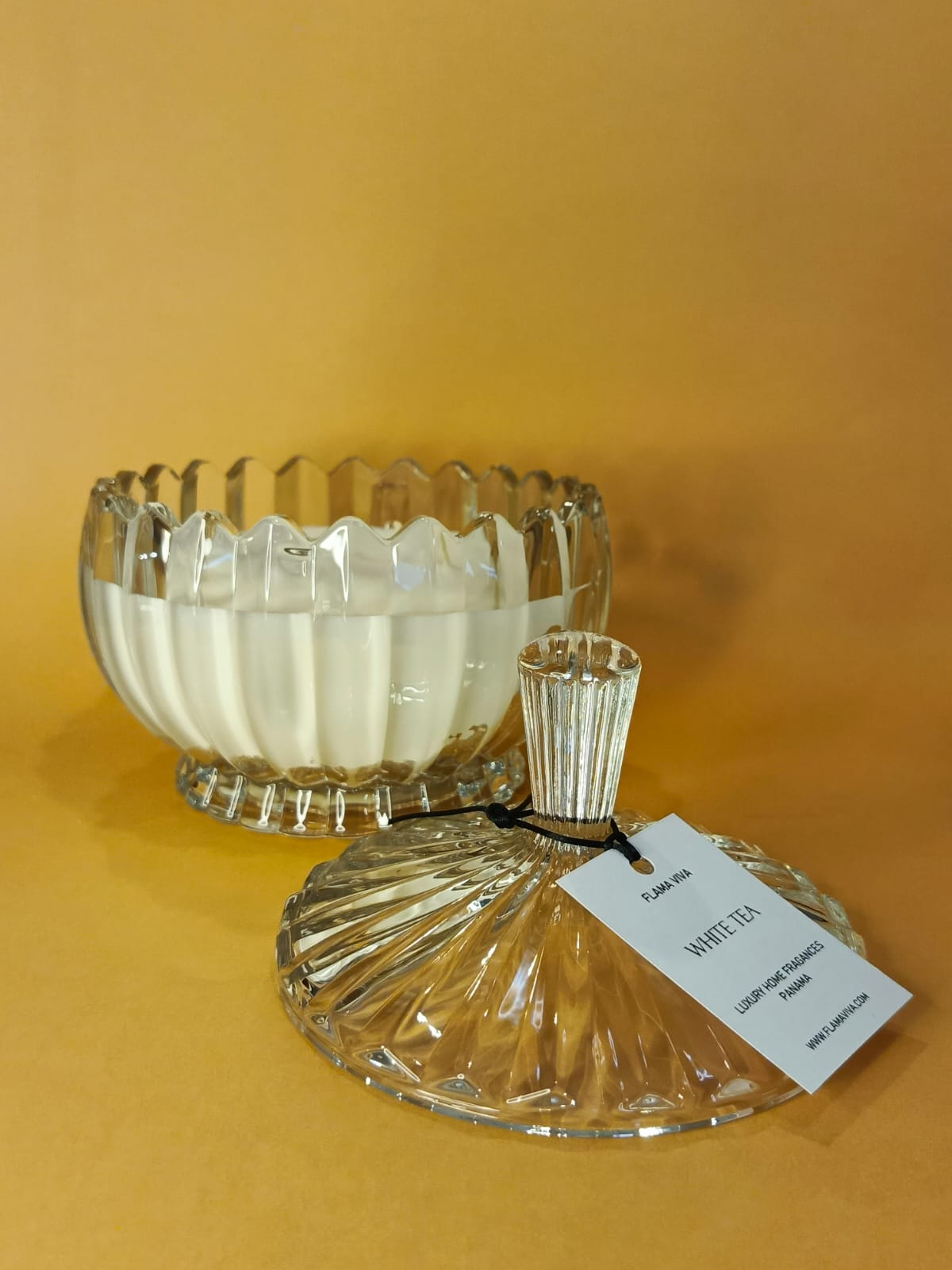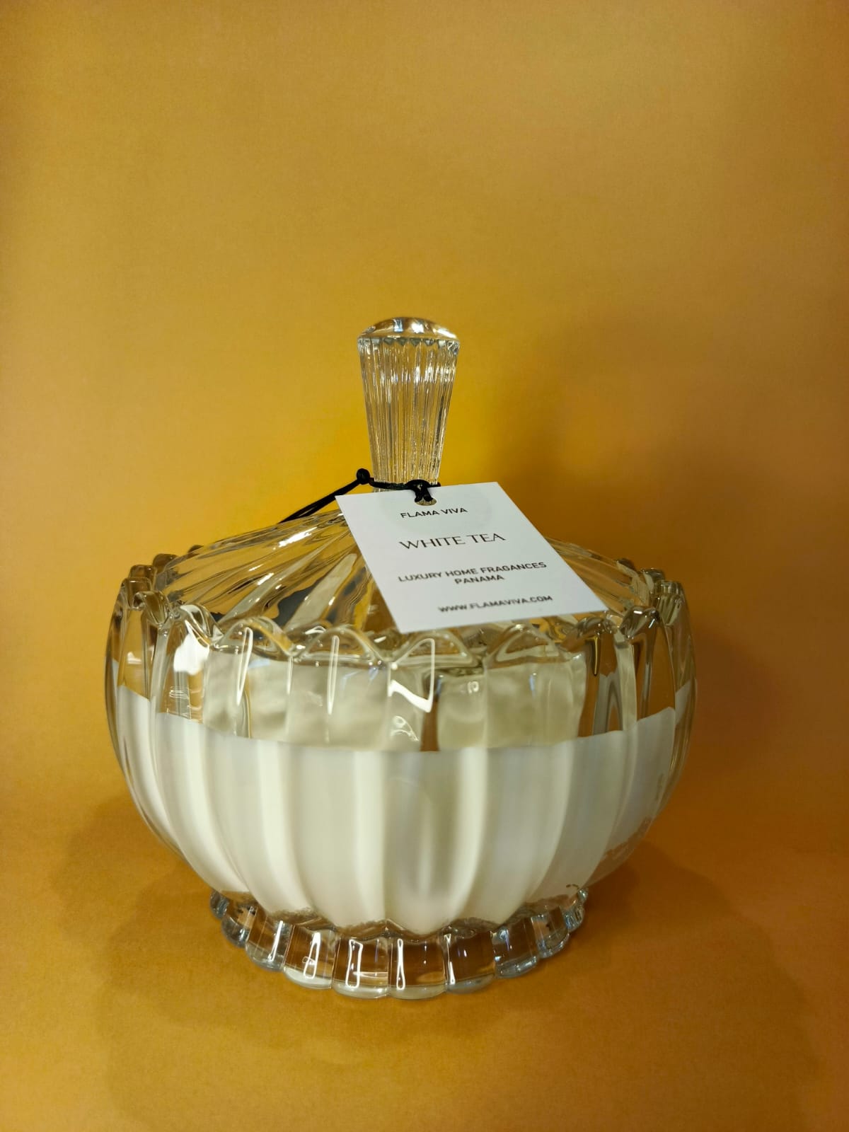 Vela Caixa, envase de cristal con tapa en tamaño XL.
